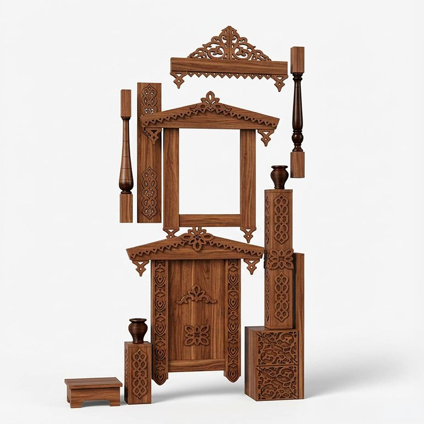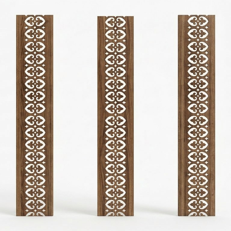 Фанера Сейба. Шпон Орех 550С.Перегородка выполнена из мдф . Поверхность облицована шпоном ореха 550С с нанесением матового лака. Внутренние вставки с узорами выполнены из мдф толщиной 19 мм на ЧПУ и покрыты матовым лаком