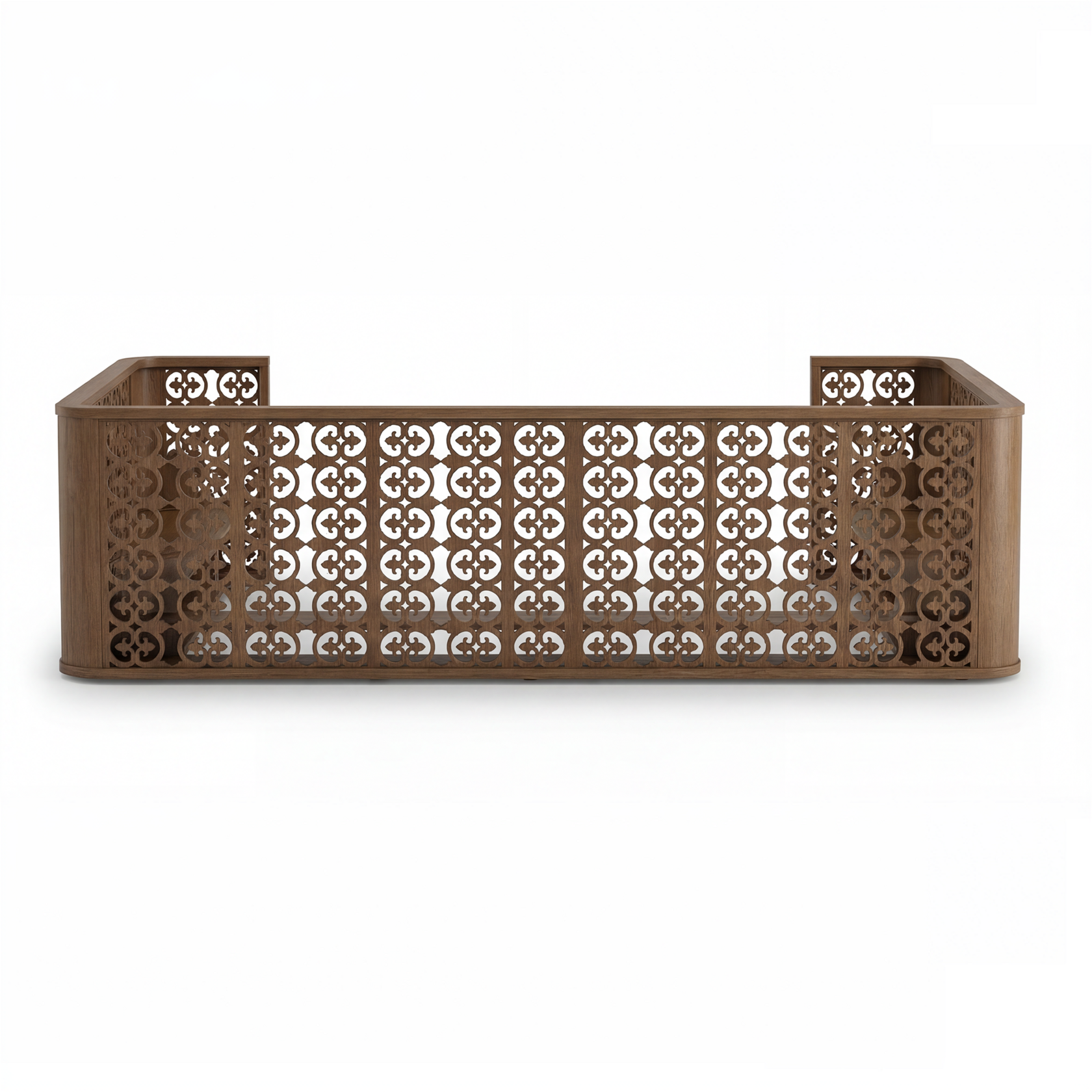 Фанера Сейба. Шпон Орех 550С. Перегородка выполнена из мдф. Поверхность облицована шпоном ореха 550С с нанесением матового лака. Внутренние вставки с узорами выполнены из мдф толщиной 19 мм на ЧПУ и покрыты матовым лаком